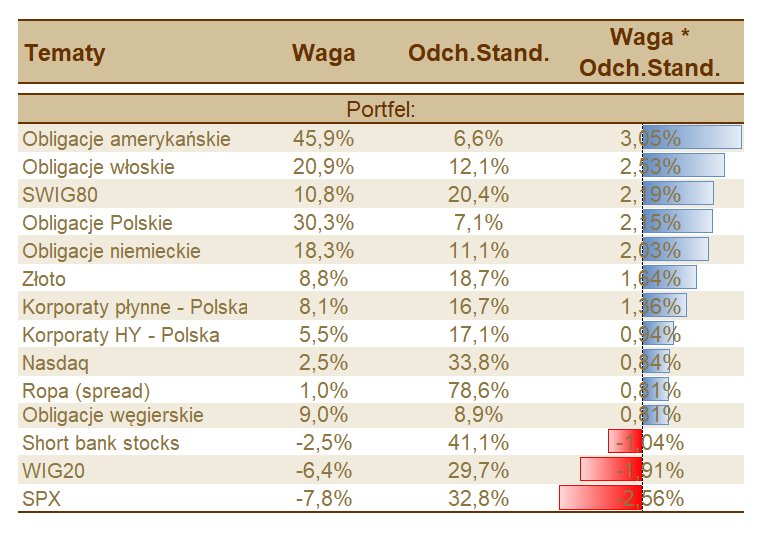 WYKRES 2. Ryzyko portfela QGB według poszczególnych „tematów” inwestycyjnych (na 30.04.2020).